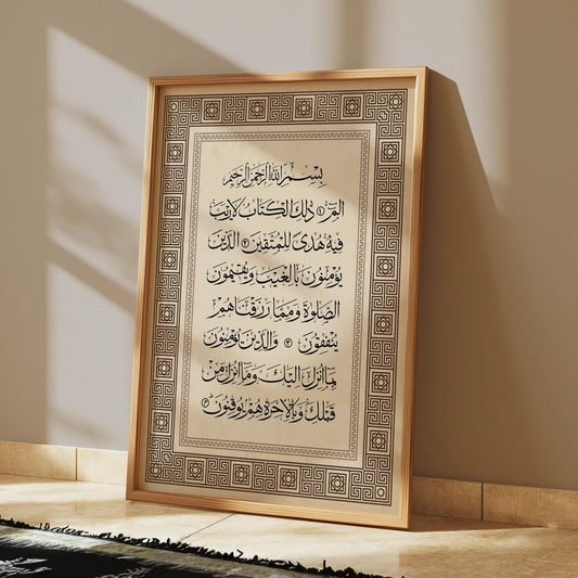 Surah Baqarah Islamic Wall Art in Gold Border